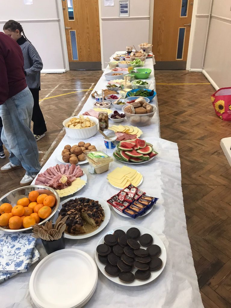 A lovely ploughman’s lunch was enjoyed by everyone, with a fantastic selection of dishes to choose from. Our heartfelt thanks go to Bev, who kindly transported most of the food in her little car, and to our generous guests who brought along some delicious cakes to share.
